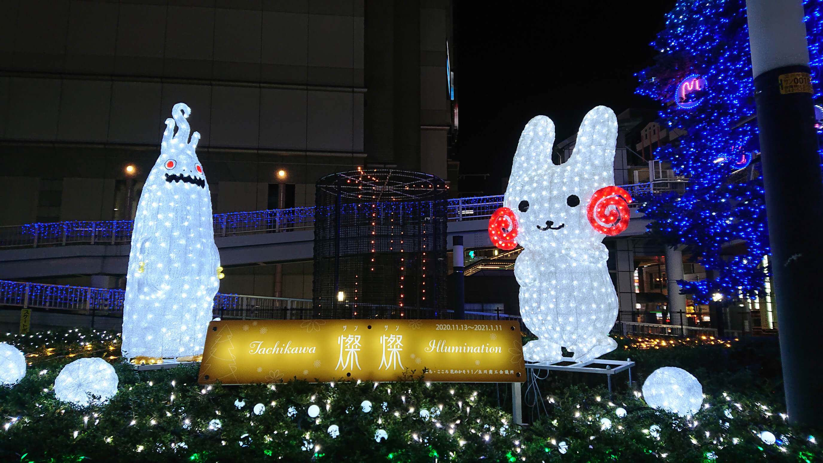 都市軸道路を彩る冬のイベントとして平成16年にシンボルツリーのモミの木を中心に点灯し、現在では近隣のイルミネーションと合わせて冬の立川を代表するイベントとなっておるのじゃ。