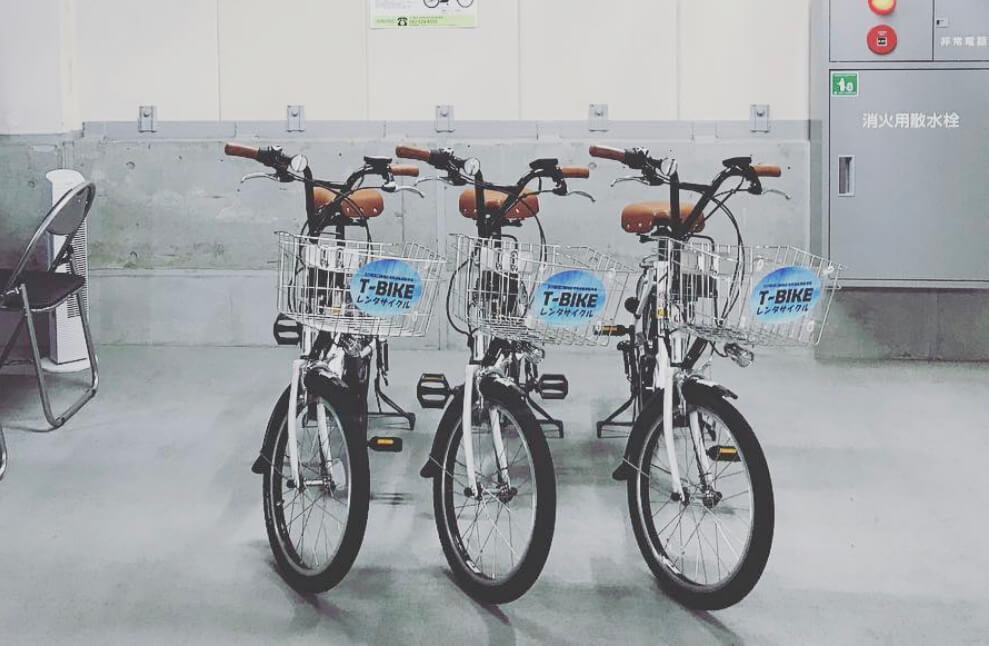 駅前のタクロスでレンタサイクルが利用できるぞ!24時間・365日利用可能じゃ。電動アシスト自転車で買い物もラクラク、北口も周り放題じゃ。