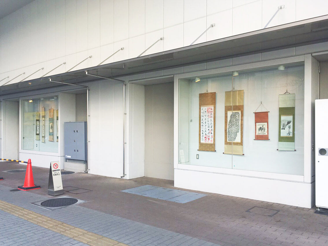 タクロス1Fの昭和記念公園通りに面した場所に、様々な展示ができるショーケースがあるのじゃ。地域のカルチャースクールの作品が鑑賞できる、隠れたアートスポットなのじゃ。